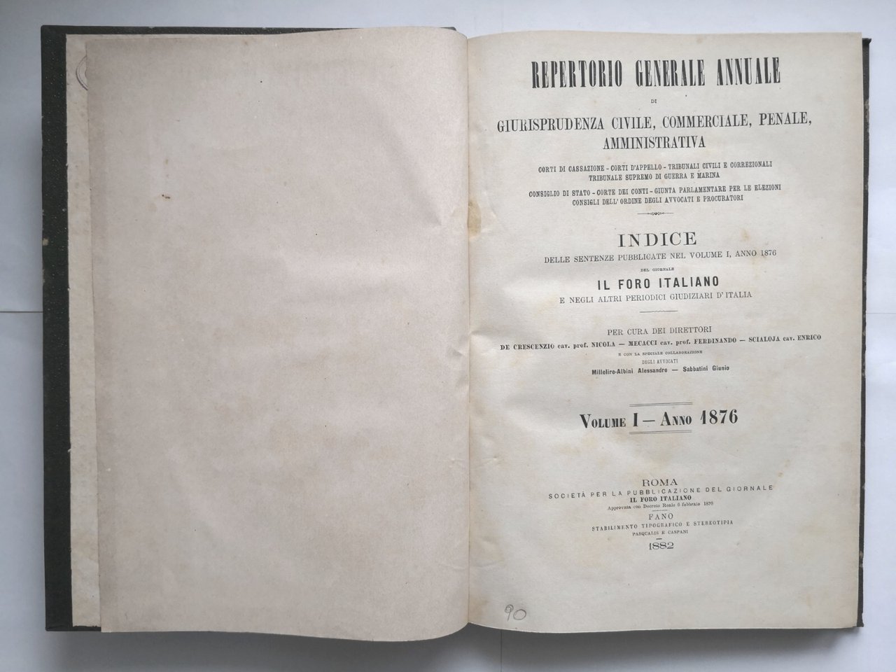 Roma, Il foro italiano, Stabilimento Tipografico e Stereotipia Pasqualis e Caspani, 1882.