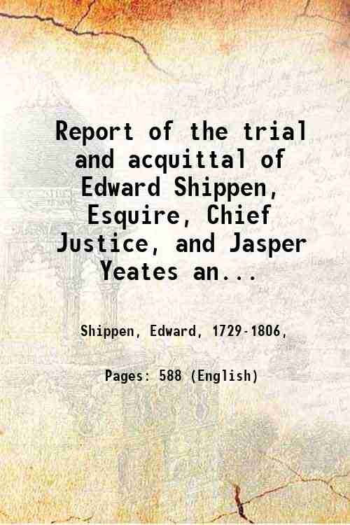 Report of the trial and acquittal of Edward Shippen, Esquire, Chief Justice, and Jasper Yeates and Thomas Smith, Esquires, Assistant Justices, of the Supreme court of Pennsylvania, on an impeachment, before the Senate of the Commonwealth, January, 1805 / by William Hamilton. 1805
