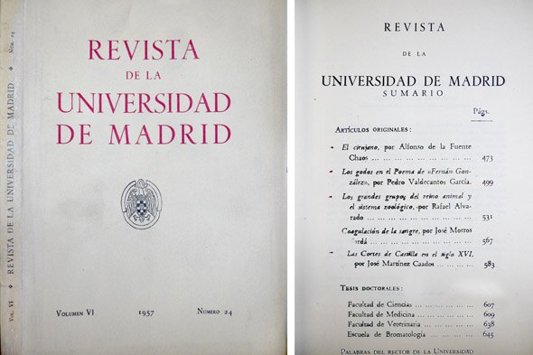 Revista de la Universidad de Madrid. Volúmen VI, Número 24. (Alfonso de la Fuente Chaos: El cirujano; Pedro Valdecantos García: Los godos en el Poema de Fernán González; Rafael Alvarado: Los grandes grupos del reino animal y el sistema zoológico; José Morros Sardá: Coagulación de la sangre; José Martínez Caados: Las Cortes de Castilla en el Siglo XVI, entre otros textos).