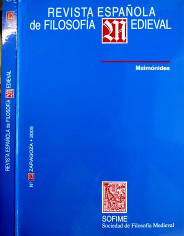 Revista Española de Filosofía Medieval. Monográfico sobre Maimónides. Textos de Carlos del Valle, Joaquín Lomba Fuentes, Fernando Díaz Esteban, Rafael Ramón Guerrero, Mauro Zonta, Lola Ferre, María José Cano, Juan Pedro Monferrer Sala, Tomás Valladolid Bueno y Antonio Ríos Rojas.