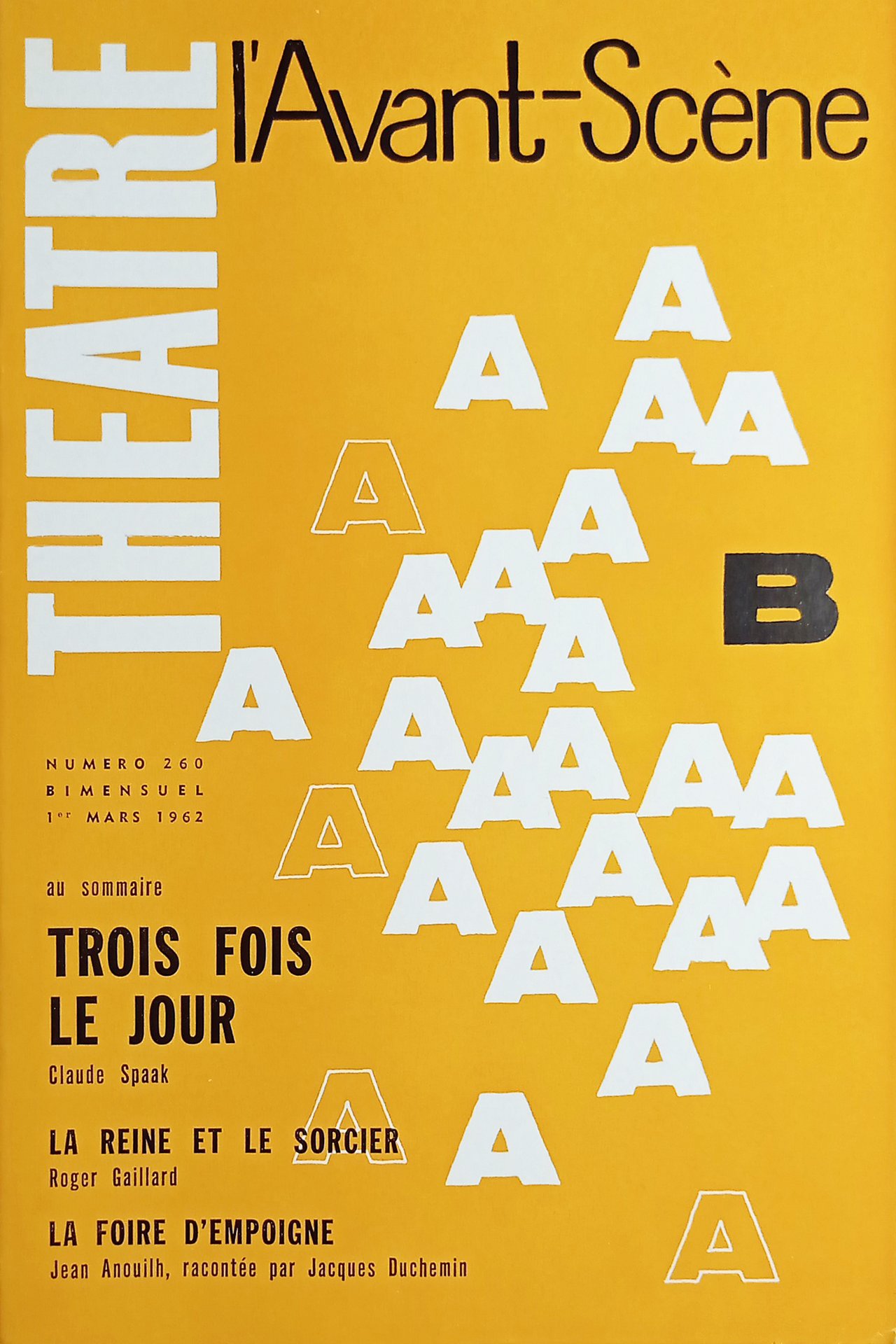 Revue - L'Avant-Scène Theatre n. 260 - Trois Fois le Jour - 1962 Testo in lingua francese. Pagine 42 con illustrazioni. Copertina morbida. Condizioni molto buone.