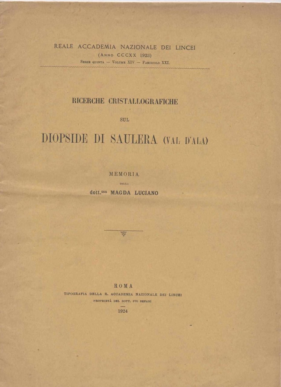 Ricerche cristallografiche sul diopside di Saulera (Val d'Ala) - Memoria della dott.ssa Magda Luciano