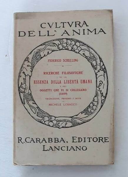 La Collana Cultura dell’Anima fu ideata da Giovanni Papini e pubblicata da Rocco Carabba dal 1909 al 1938, per un totale di 163 titoli. Prima edizione. Traduzione, proemio e note di Michele Losacco.