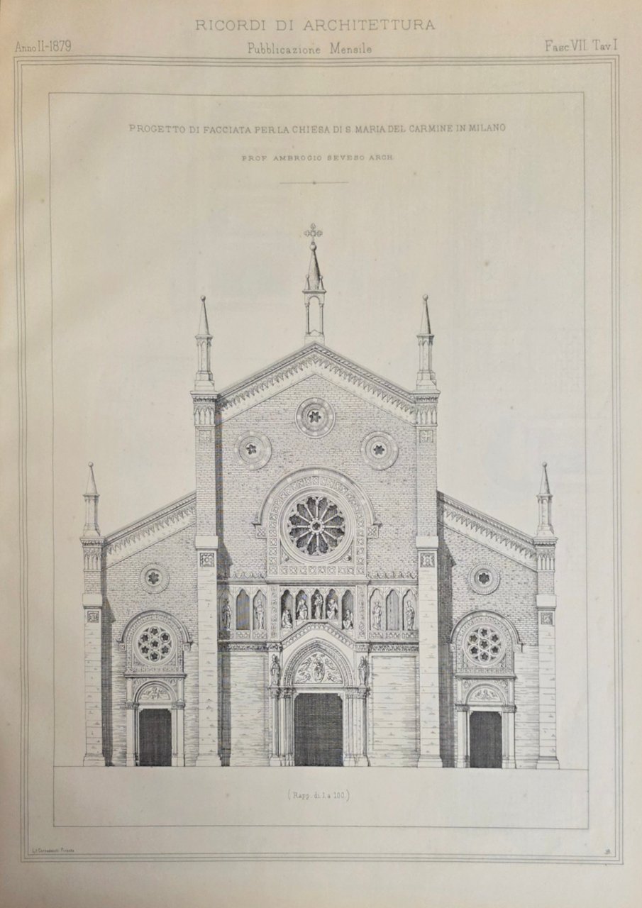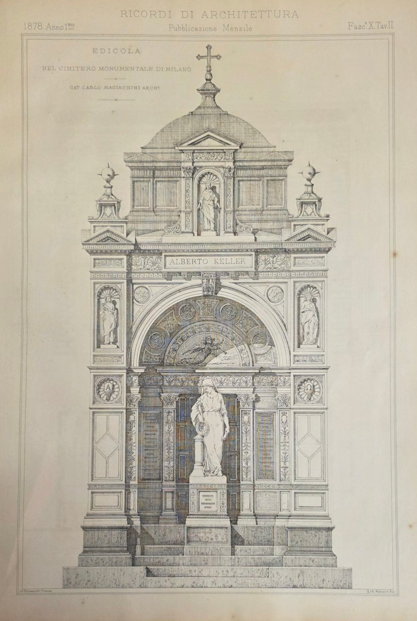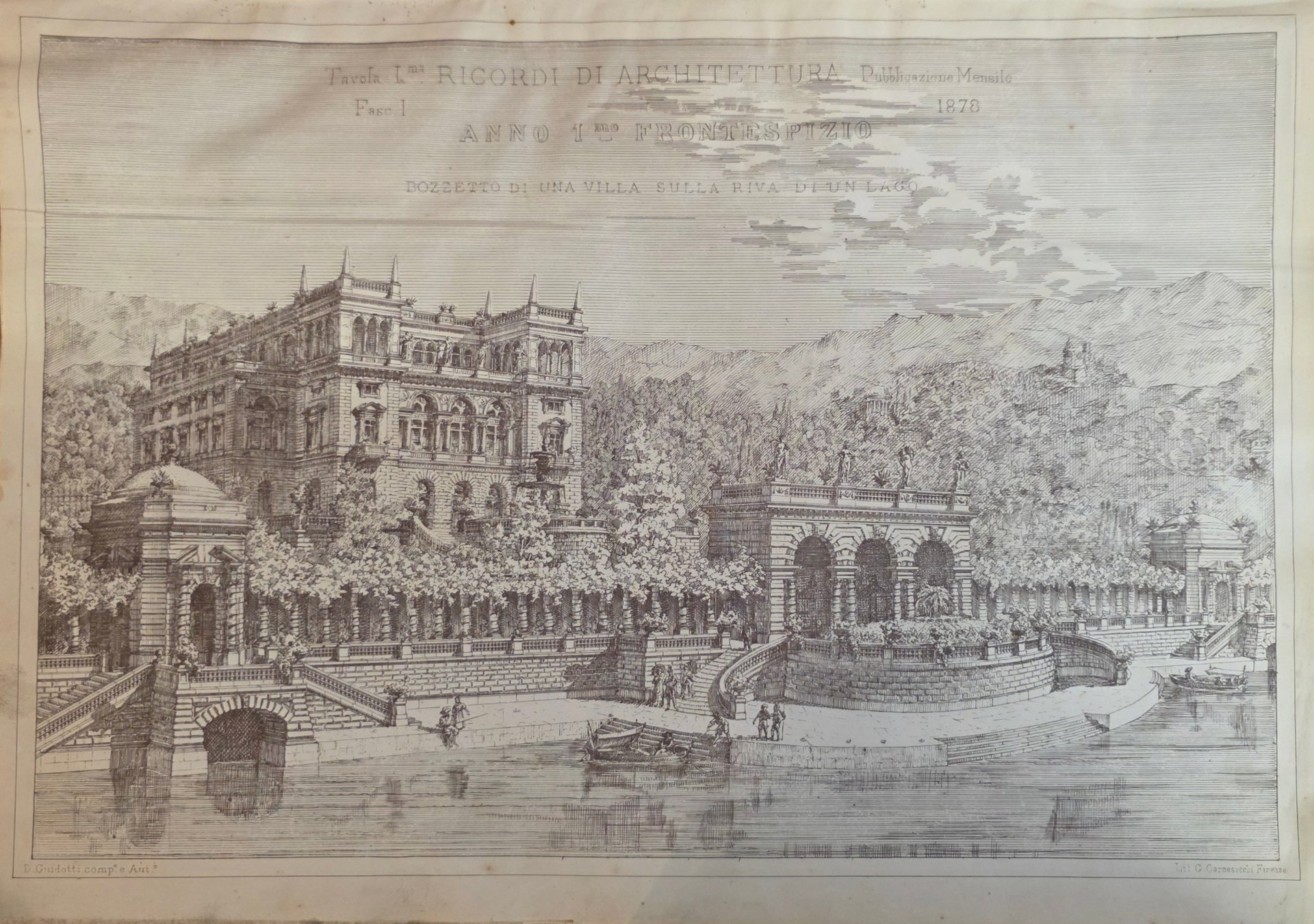 Ogni vol. ha 12 fascicoli contenenti 6 tavv. ciascuno. Nel primo vol. (annata 1878) presenti anche i supplementi del Concorso per l'Ossario tavv. in bianco e nero o color seppia. in folio leg. mezza pelle con piatti marmorizzati, titolo in oro al dorso 5 voll. Buono (Good) Buon es., tracce di umidità alla legatura e fioriture sparse alle pagg..