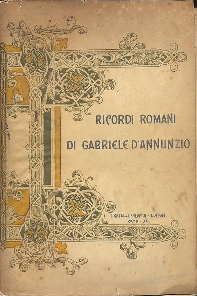 In 4°, br., pp. 227 con numerose ill. nel e f. t. Carta forte. Cop. ill. a colori. Bei marg. Cop. e vol. sciolti, collazionati. Il vol. contiene scritti di : Munoz (Gabriele D'Annunzio e Roma), Trompeo (I più belli occhi di Roma - L'Ippolita dannunziana), Fleres ( Il Poeta a Roma), Jandolo (Gabriele D'Annunzio e la famiglia Sindici - Un sonetto inedito e uno apocrifo), Cianfarani (Cronaca minima della prima de "La Nave" al Teatro Argentina), Huetter (Storia di una epigrafe e di un approdo fatale), Veo (Maggio 1915 - Maggio 1919), Bruers ( Gioacchino Belli e Gabriele D'Annunzio), Pelosini (D'Annunzio e Trilussa). Esempl. raro.