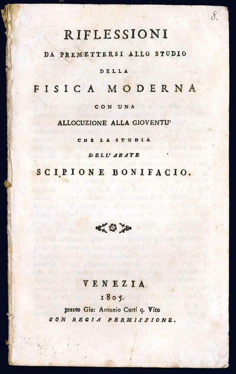 Riflessioni da premettersi allo studio della fisica moderna con un allocuzione alla gioventu che la studia dell'abate Scipione Bonifacio.