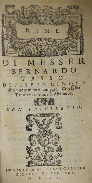 RIME. - Divise in cinque libri nuovamente stampate. Con la sua Tavola per ordine di Alfabetto.