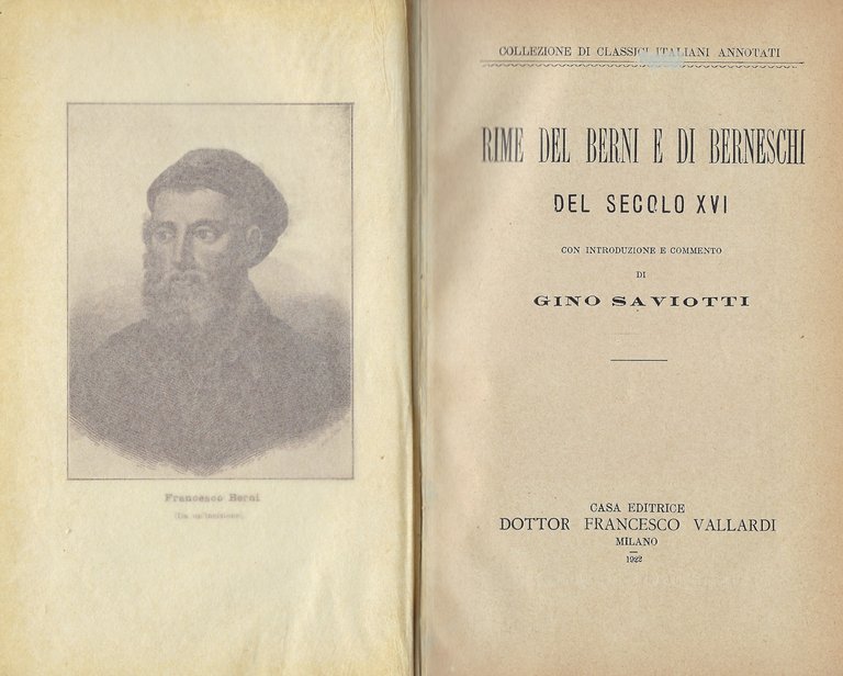 Rime del Berni e di Berneschi del secolo XVI. Con introduzione e commento di Gino Saviotti.