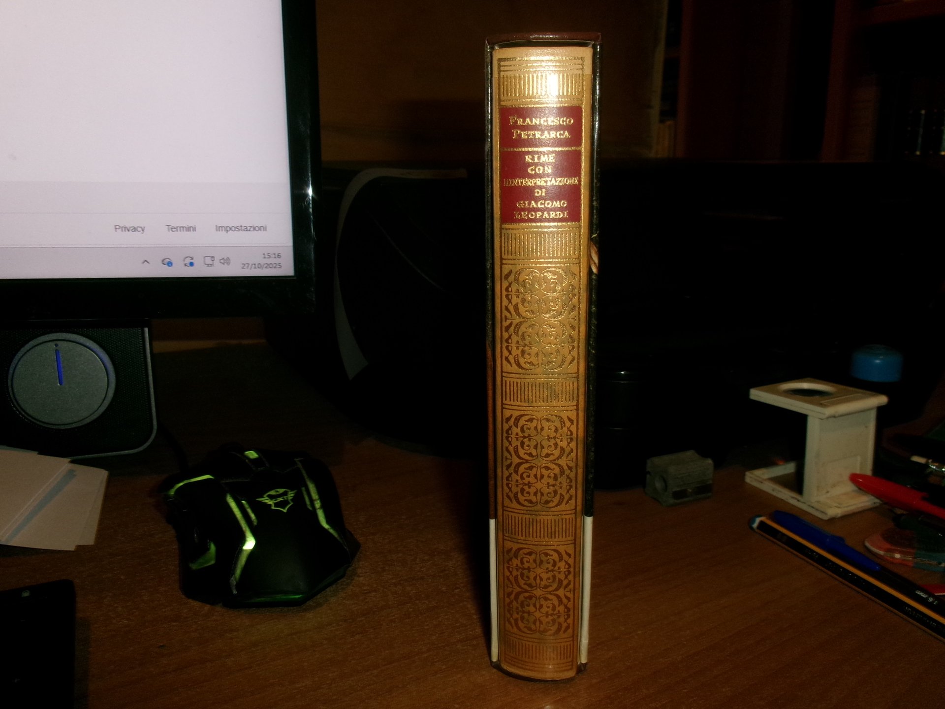 RIME di FRANCESCO PETRARCA con l' interpretazione di Giacomo Leopardi. Introduzione di Adelia Noferi. Milano, Longanesi & C., 1976. In-16° grande, pelle edit. con titolo e fregi in oro sul dorso, sovracopertina in acetato. 643, (1) pp. con astuccio edit. ill. a col. Edizione numerata di milleduecento copie stampate su carta d' india (copia n. 760). In ottimo stato di conservazione. Neg. lett. mod. mob. H