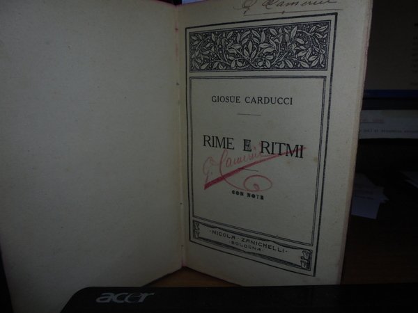 Giosuè, Carducci - Bologna, Nicola Zanichelli, 1913. In-16°, tela sciupata. 262 pp. con alcune tavole in nero fuori testo. Firma autografa di G. Camerini in antiporta. Neg. mob. 7