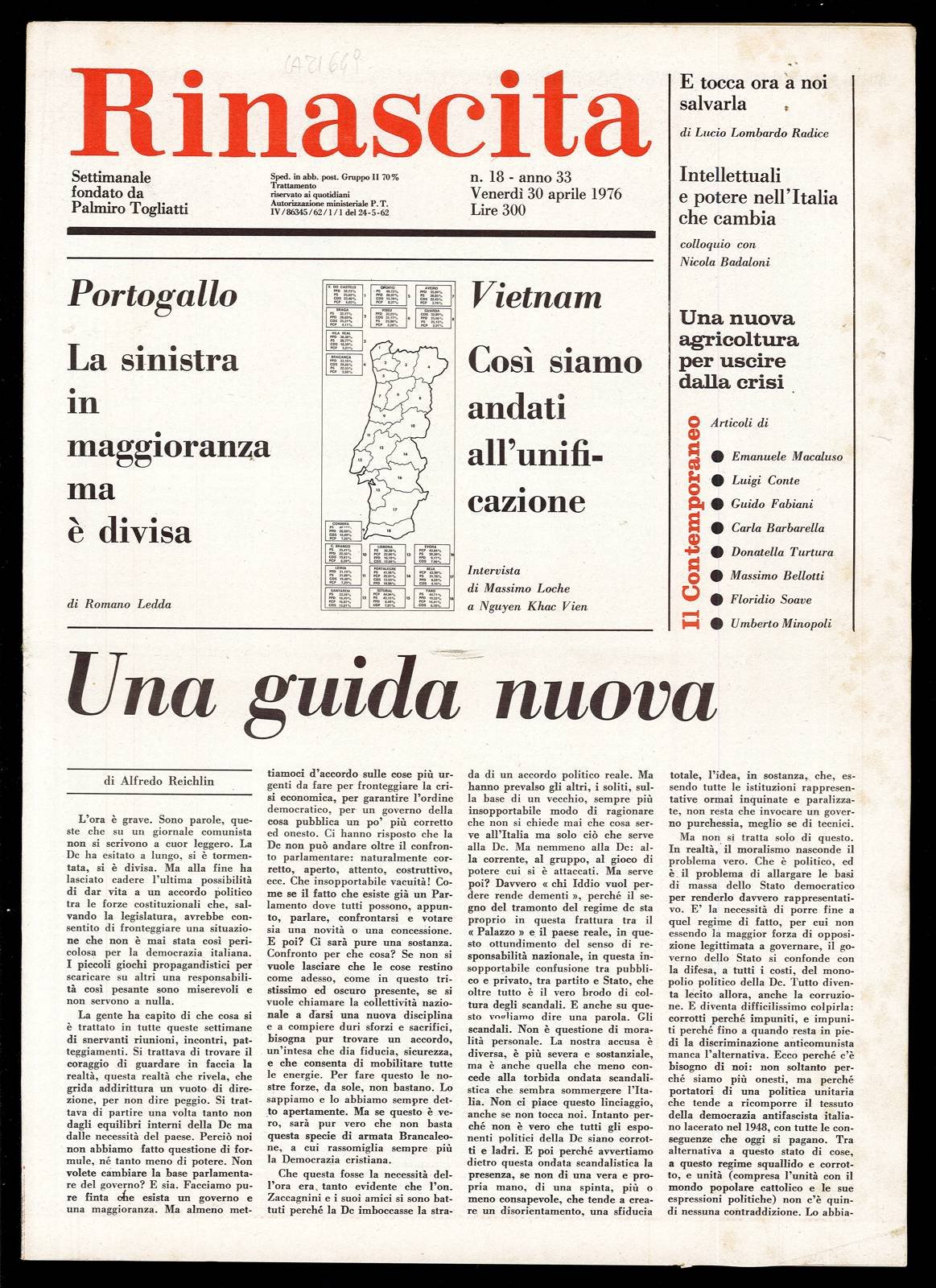 Rinascita Anno 33 n. 18 | Rare and modern books | Togliatti Palmiro, Togliatti Palmiro