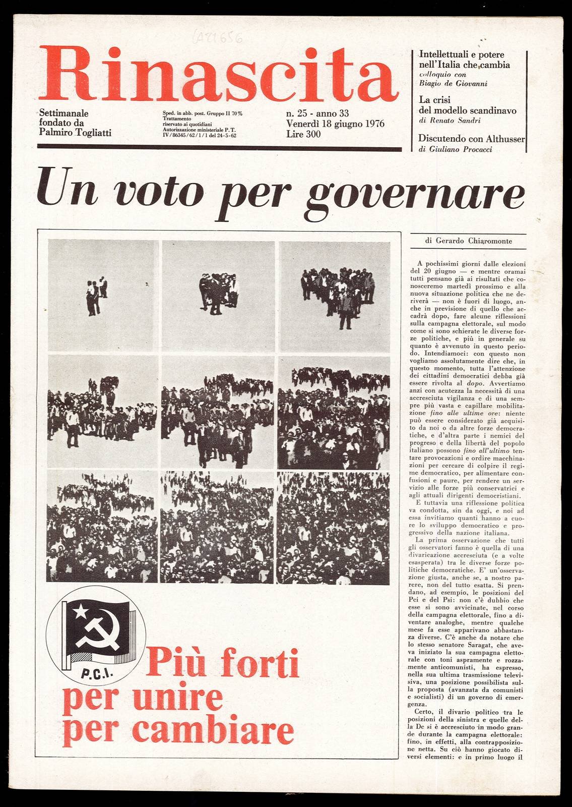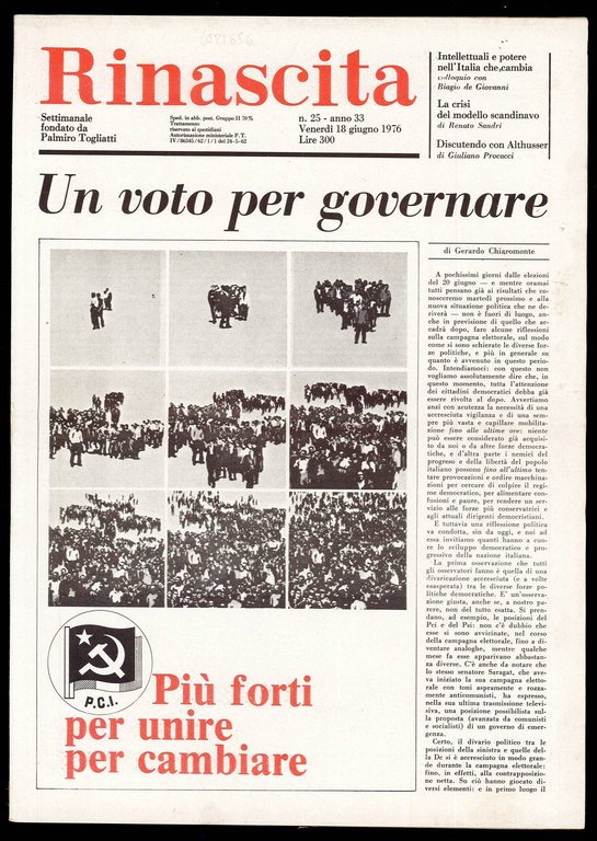 Rinascita Anno 33 n. 25 | Rare and modern books | Togliatti Palmiro, Togliatti Palmiro