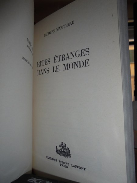 Jacques, Marcireau. Paris, Robert Laffont, 1974. Rites étranges dans le monde. In-8°, cartoncino edit. 346 pp. In ottimo stato di conservazione. Uff. TV. mob. nostro