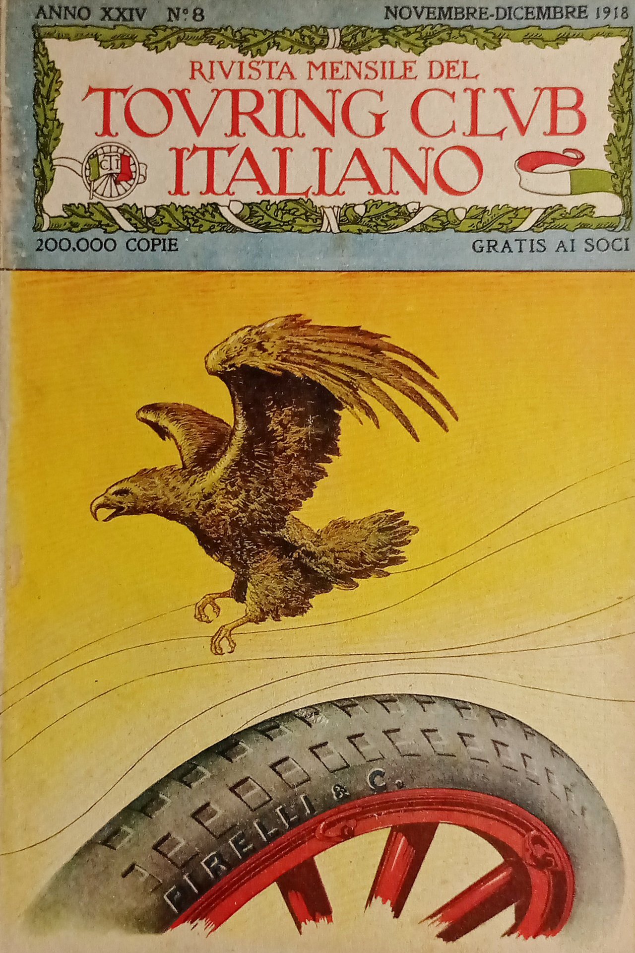 Rivista - Touring Club Italiano N. 8 - 1918 Pubblicità Gomme Pirelli