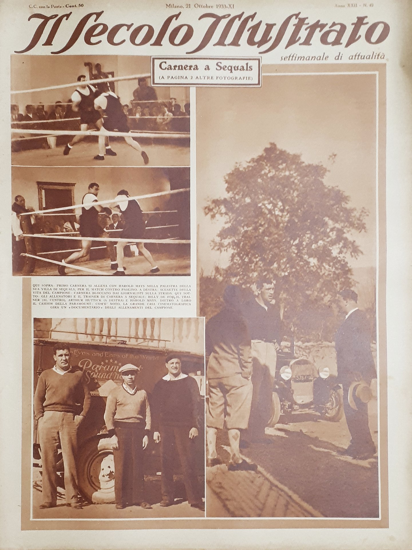Rivista Attualità - Il Secolo illustrato N. 42 - Carnera e Sequals - 1933 Testo in lingua italiana Pagine - 15 Condizioni buone