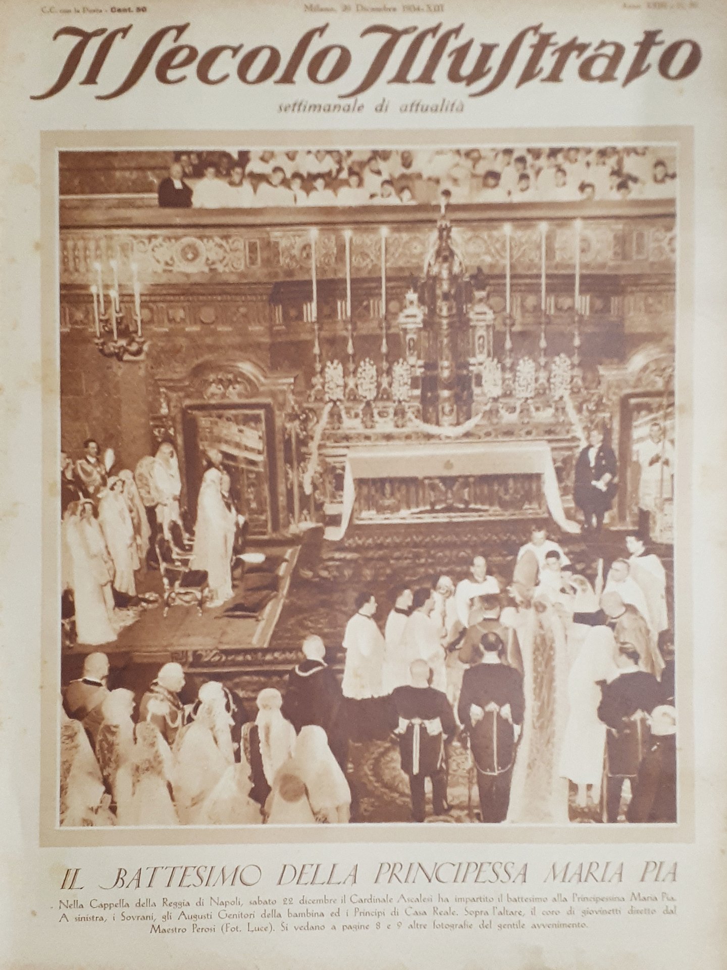 Rivista Attualità - Il Secolo illustrato N. 52 - Il Battesimo della Principessa Maria Pia - 1934 Testo in lingua italiana Pagine - 15 Condizioni buone