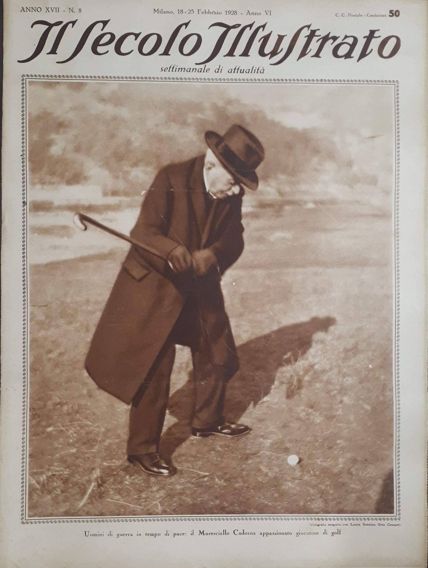 Rivista Attualità - Il Secolo illustrato N. 8 - Maresciallo Cadorna appassionato giocatore di golf - 1928 Testo in lingua italiana, Pag. 15 con illustrazioni Condizioni molto bune