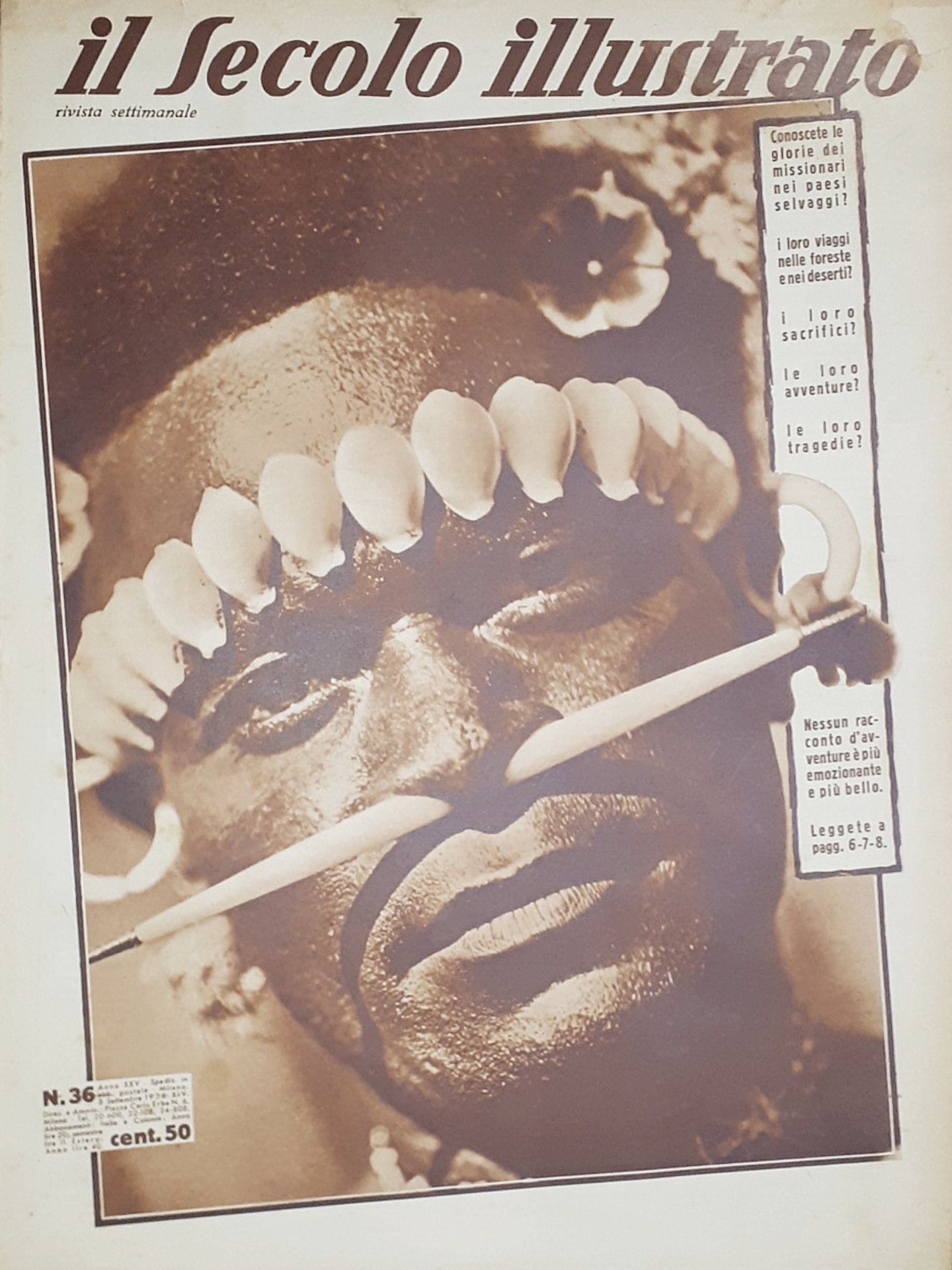 Rivista Attualità Il Secolo illustrato N. 36 Missionari nei paesi selvaggi 1936
