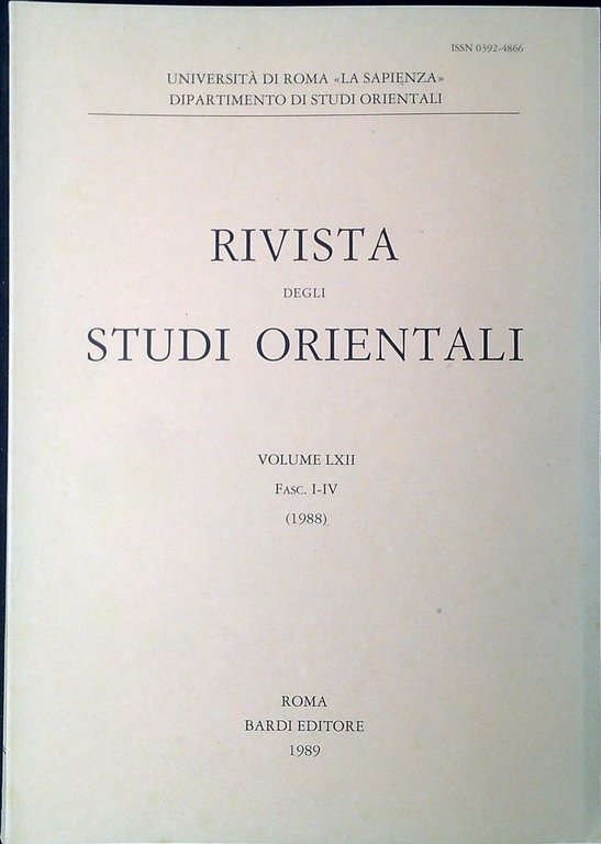 Rivista degli Studi orientali. Volume 62 Fasc-1-4 1988