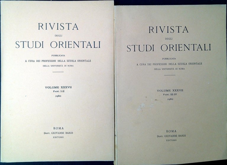Rivista degli Studi orientali. Volume XXXVII Fasc-1-4 1962