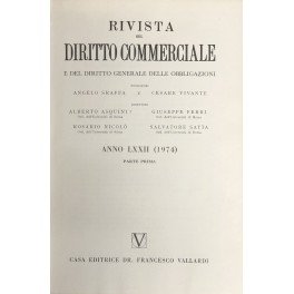 Rivista del Diritto Commerciale e del diritto generale delle obbligazioni. Fondata da A. Sraffa e C. Vivante. Diretta da A. Asquini, G. Ferri, R. Nicolò, S. Satta. Vol. LXXII - 1974