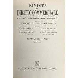 Rivista del Diritto Commerciale e del diritto generale delle obbligazioni. Fondata da A. Sraffa e C. Vivante. Diretta da A. Asquini, G. Ferri, R. Nicolò, S. Satta. Vol. LXXIII - 1975