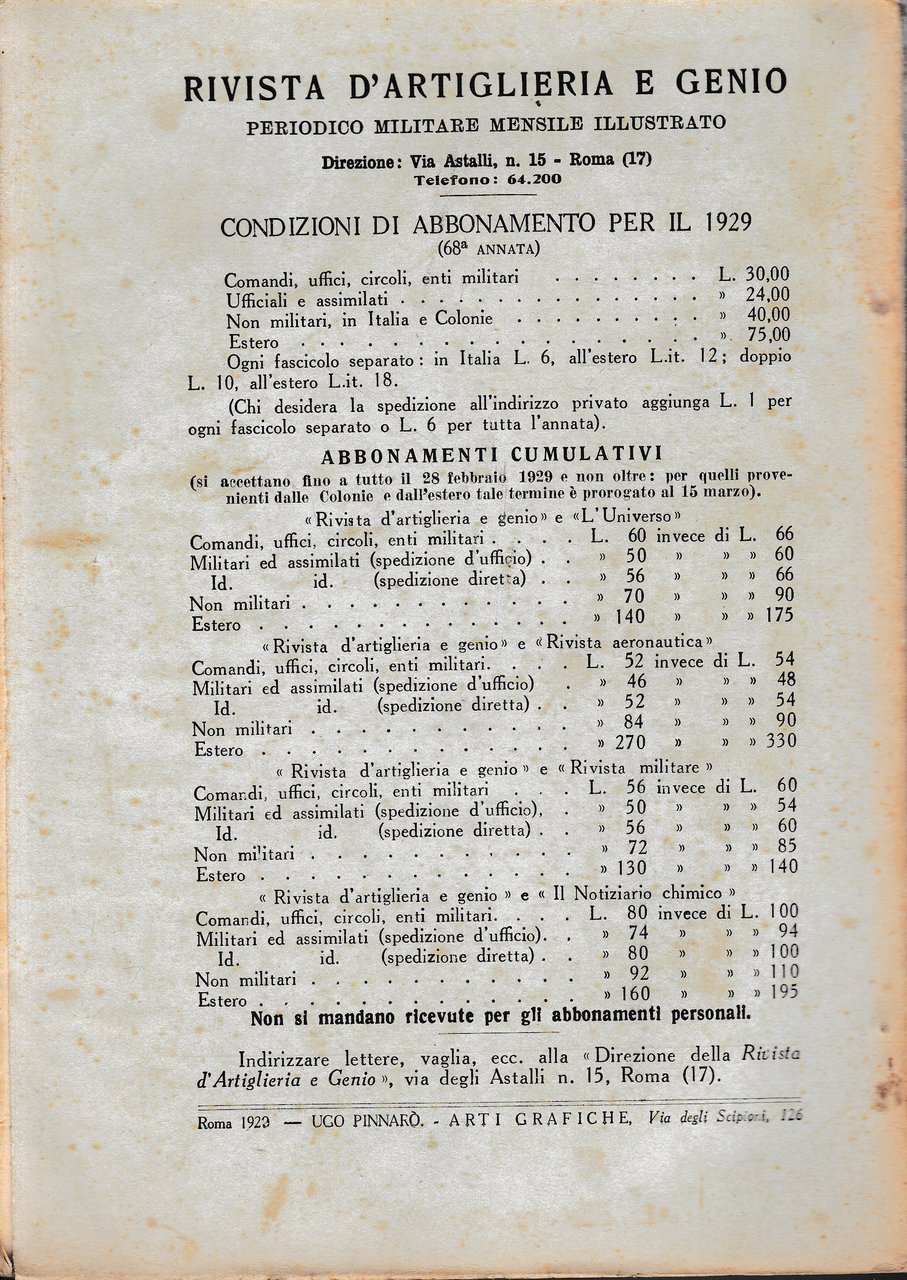 Rivista di Artiglieria e Genio. 68^ annata, fascicolo I, Gennaio 1929