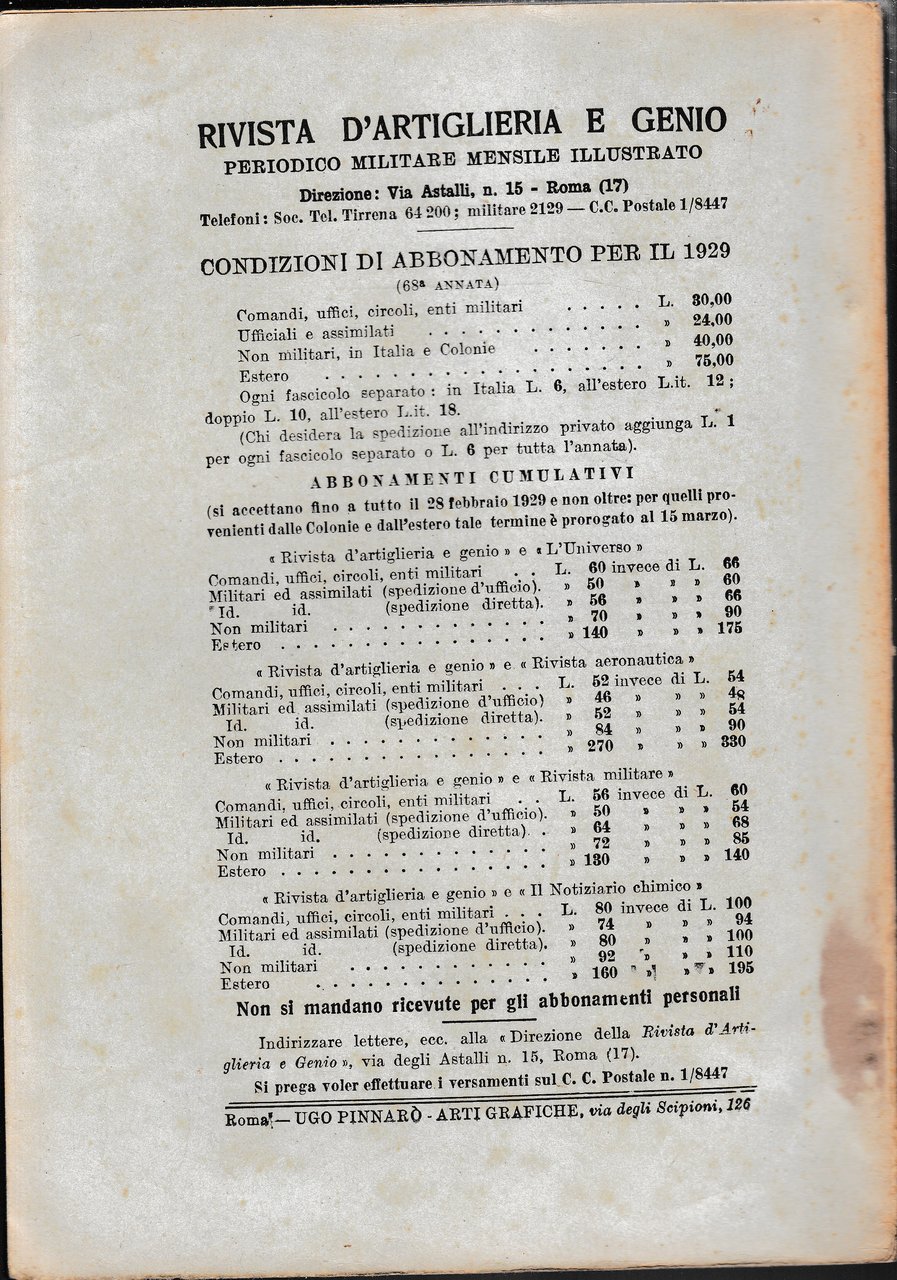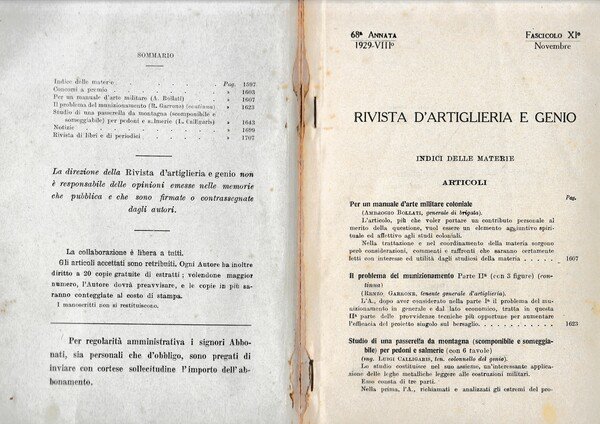 Rivista di Artiglieria e Genio. 68^ annata, fascicolo XI, Novembre 1929