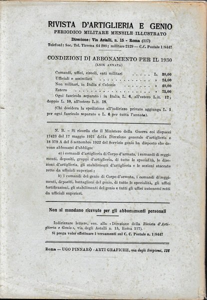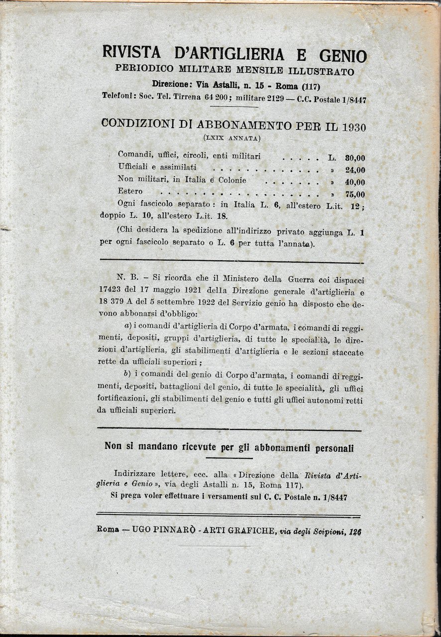 Rivista di Artiglieria e Genio. 69^ annata, fascicolo II-III, Febbraio - Marzo 1930