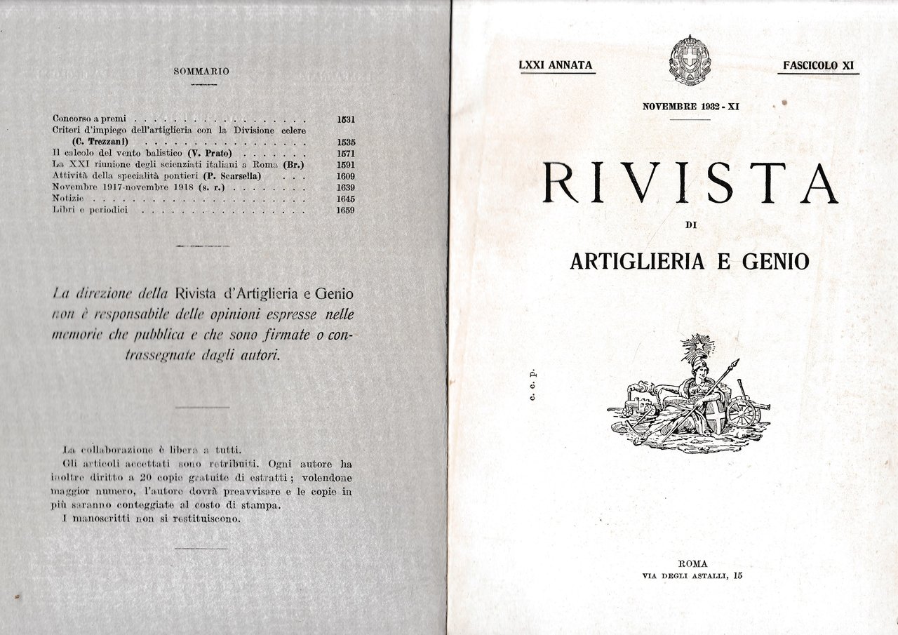 Rivista di Artiglieria e Genio. 71^ annata, fascicolo XI, Novembre 1932