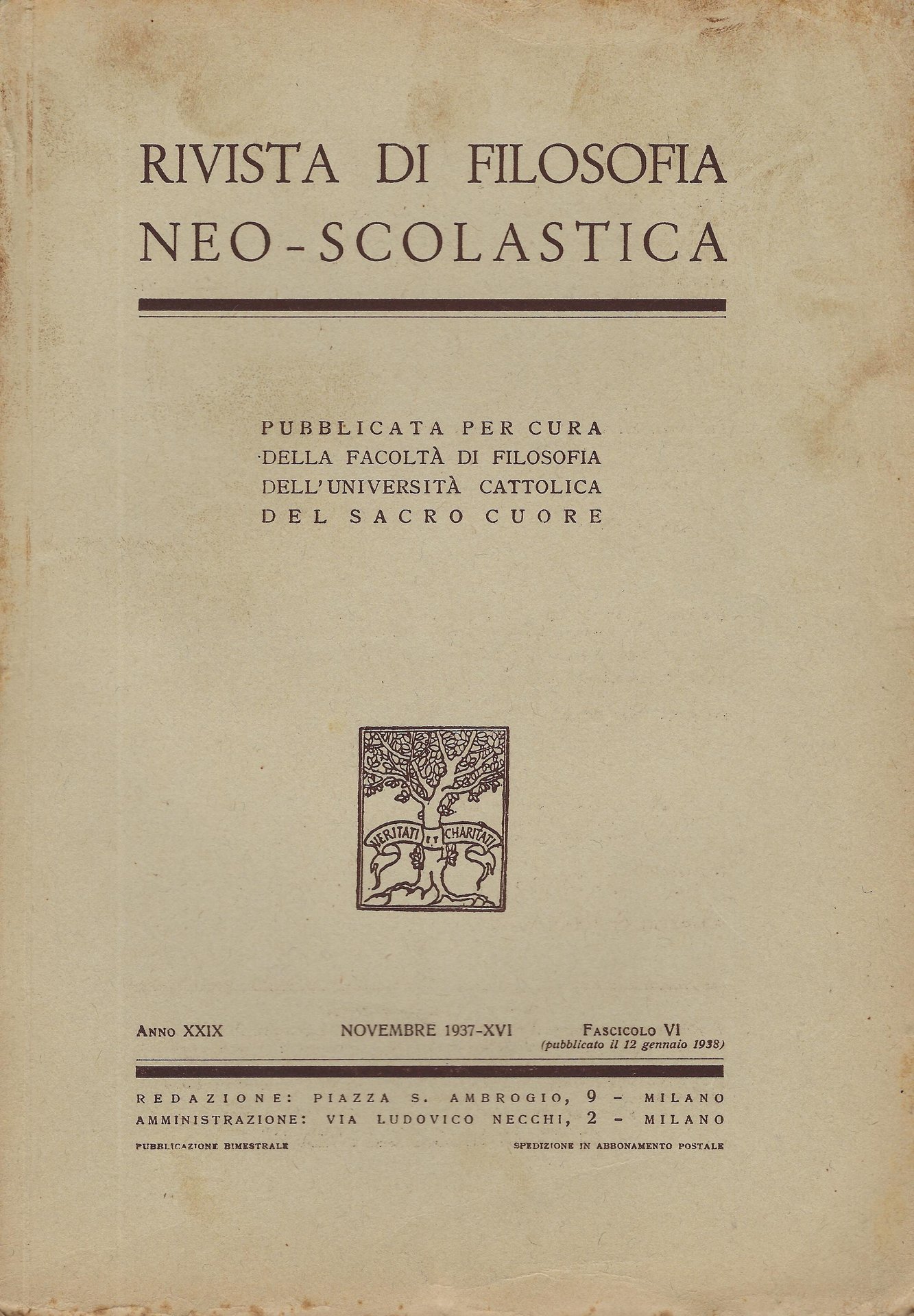 Rivista di filosofia neo-scolastica anno XXIX, fascicolo 6, novembre 1937