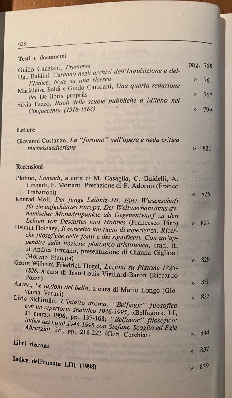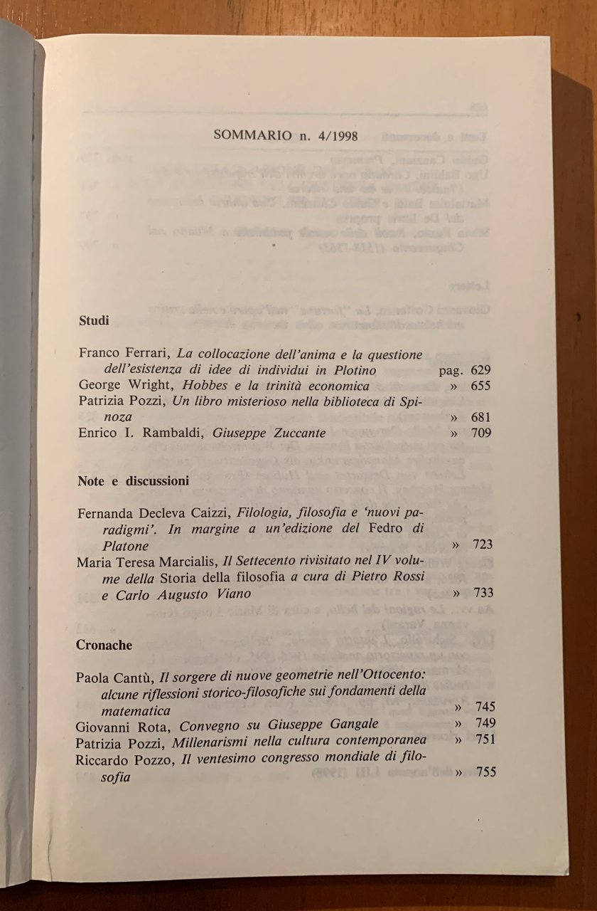 Rivista di Storia della Filosofia. Trimestrale fondato da Mario Dal Pra Anno LIII Nuova Serie 4/1998