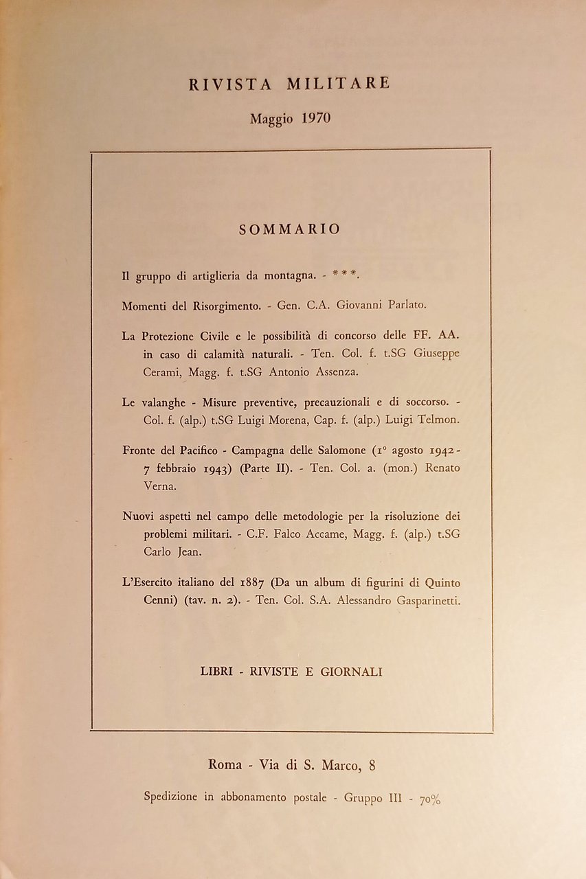Rivista Militare - Anno XXVI - N. 5 - Maggio 1970 Vedi Indice