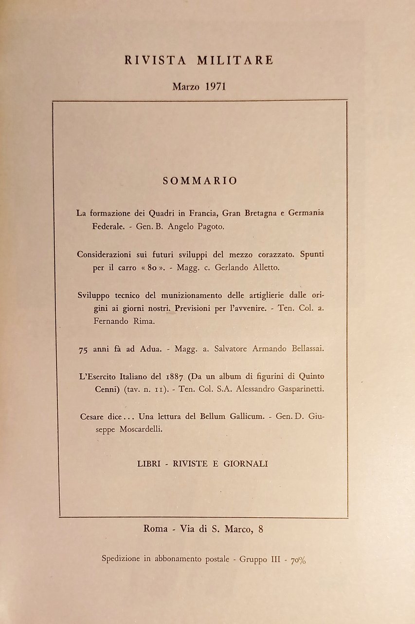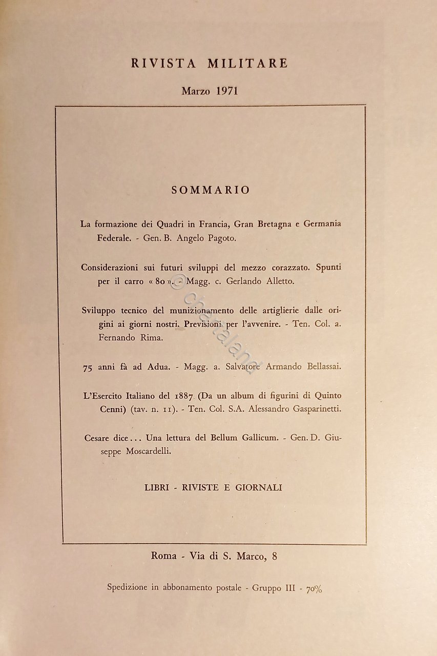 Rivista Militare - Anno XXVII - N. 3 - Marzo 1971 Vedi Indice