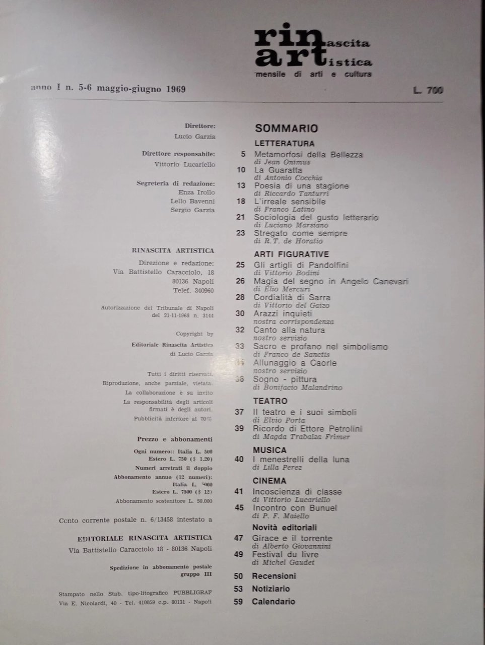 rivista RINASCITA ARTISTICA - anno I n. 5/6 1969