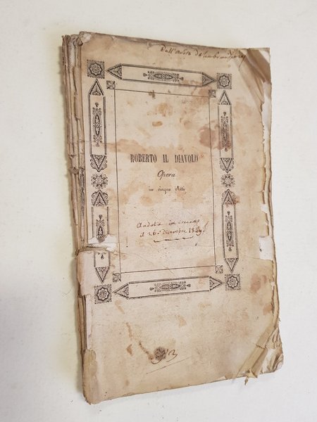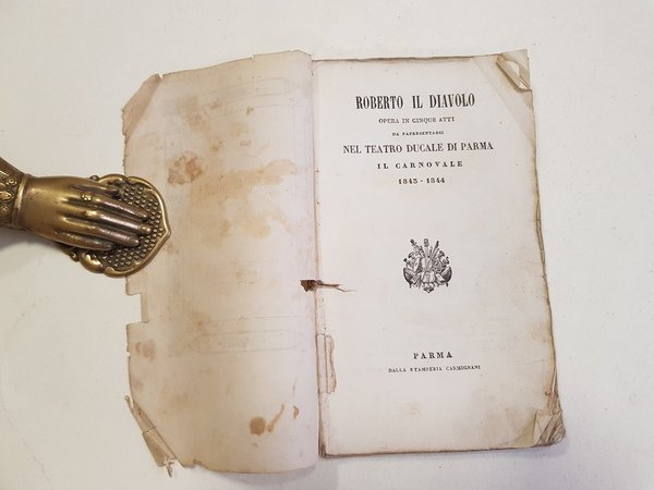 Roberto il Diavolo. Opera in cinque atti da rappresentarsi nel Teatro Ducale di Parma il Carnovale 1843-44. | Rare and modern books | (Scribe-Delavigne) - Musica Di Giacomo Mayerbeer.