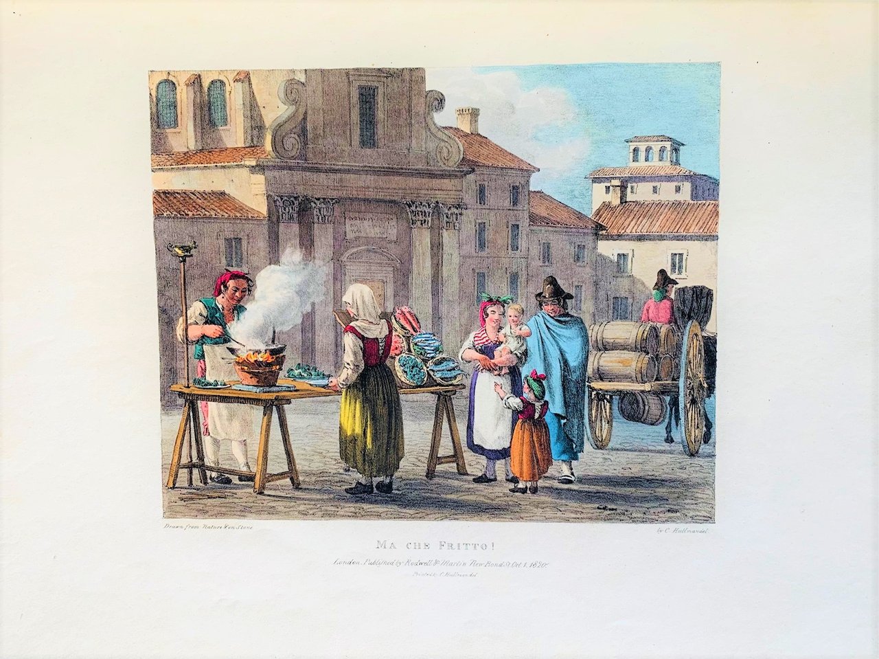 >in-folio (430x300), ff.25 (titolo litografato e 24 tavole). Sul titolo non è presente la data di stampa che compare, invece, sulle tavole. Legatura posteriore in mezza pelle e angoli, titolo e fregi al dorso. La maggior parte delle incisioni sono disegnate da Pinelli (21), 3 da Hullmandel, tutte litografate da questo noto artista inglese. Le scene costituiscono veri e propri spaccati di vita popolare della città e dei dintorni di Roma, resi ancora più suggestivi dalla tecnica incisoria utilizzata. Il metodo di riproduzione consentiva un'ottima resa grafica anche per i colori tenui, permettendo così l'impressione delle varie sfumature espressive e gli esiti della pittura ad acquerello. Charles Hullmandel (1789-1850) Importante litografo, incontrò Senefelder a Monaco nel 1817, lavorò presso il suo studio londinese al numero 51 di Great Marlborough Street dal 1819 fino alla morte producendo migliaia di stampe. Apportò innovazioni importanti al metodo di stampa a colori (lithotint). Le stampe di Hullmandel furono particolarmente ricercate anche per le opere di storia naturale, geografia e geologia. Il suo saggio del 1824 “The art of drawing on stone” non fu solo un autorevole manuale in materia, ma anche un'appassionata difesa della nuova arte litografica. Esemplare ben conservato e con le tavole ben impresse e fresche. Colas, Bibliogr. du Costume, 2382. Manca a Lipperheide.