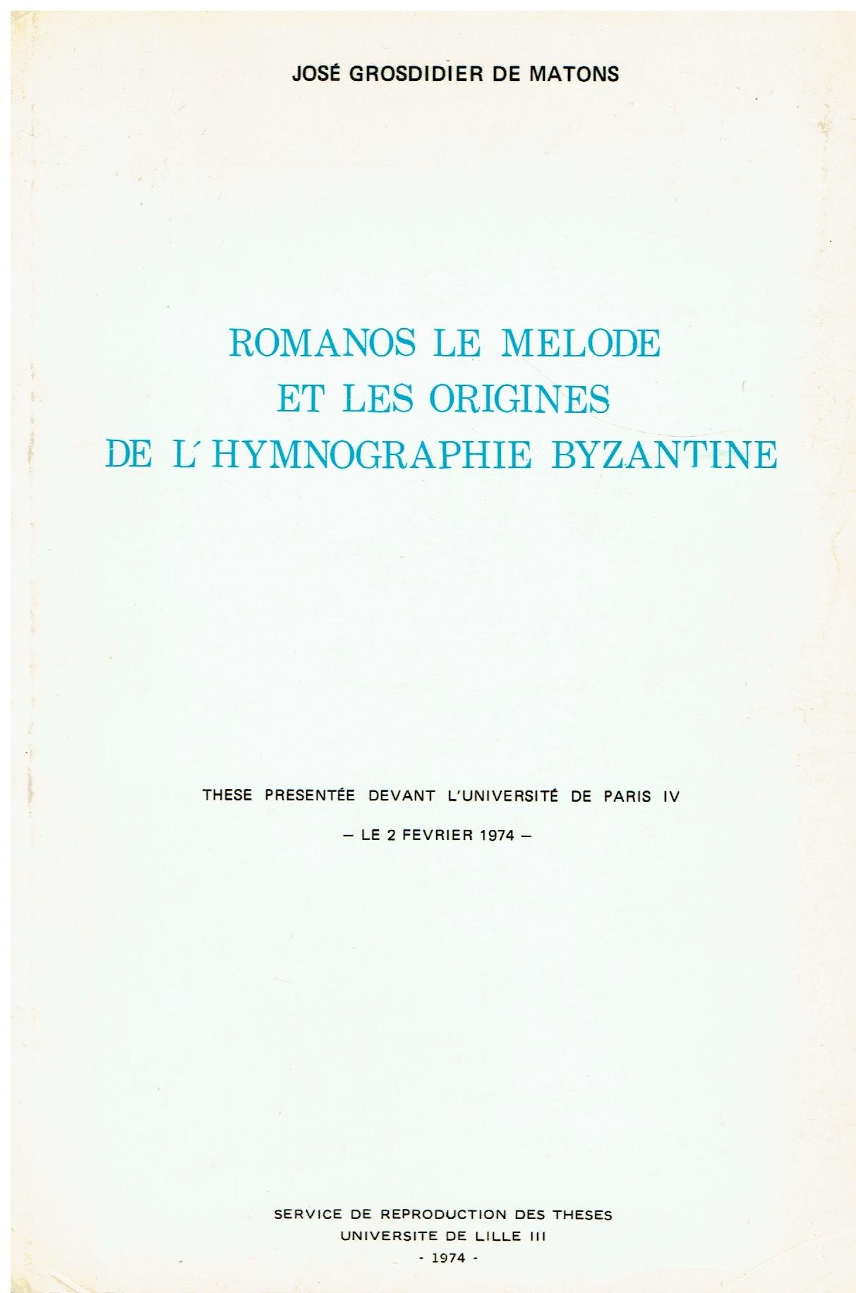 Romanos le melode et les origines de l'hymnographie byzantine