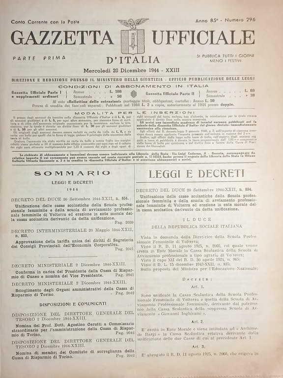 RSI Gazzetta Ufficiale d'Italia N. 296 - 1944