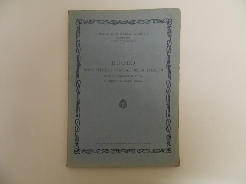 Ruolo degli ufficiali generali del R. Esercito in s.p.e., a disposizione, in a.r.q., in congedo e in congedo assoluto