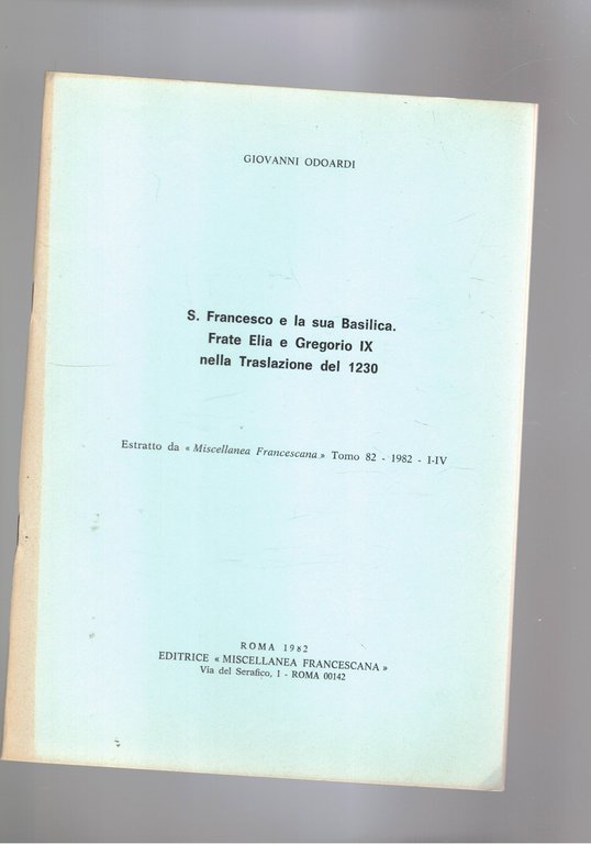 S. Francesco e la sua Basilica. Frate Elia e Gregorio IX nella Traslazione del 1230. Estratto.