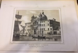 Bella litografia animata della serie "Le chiese di Venezia" di Marco <moro . Bel foglio Mis. 320x510