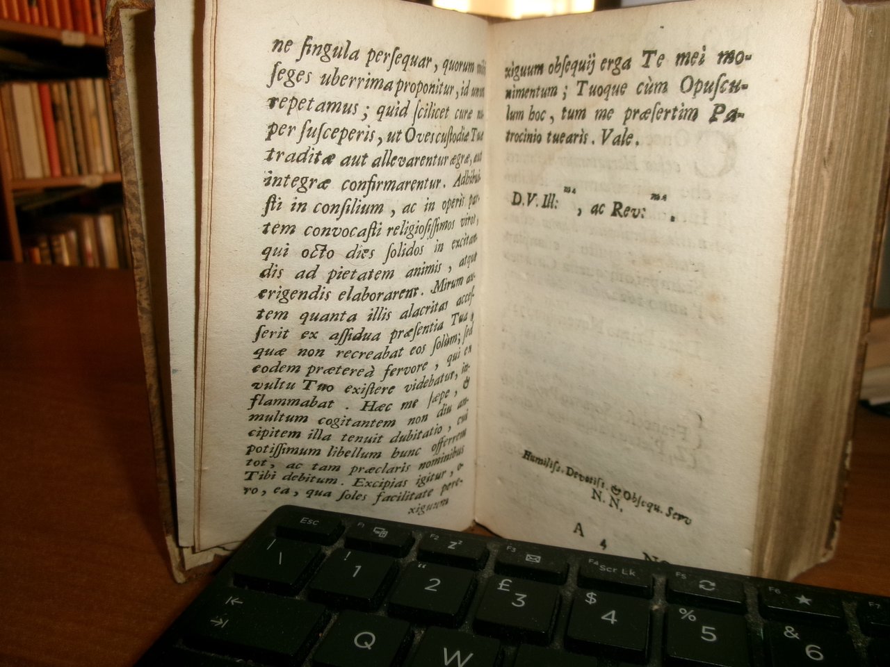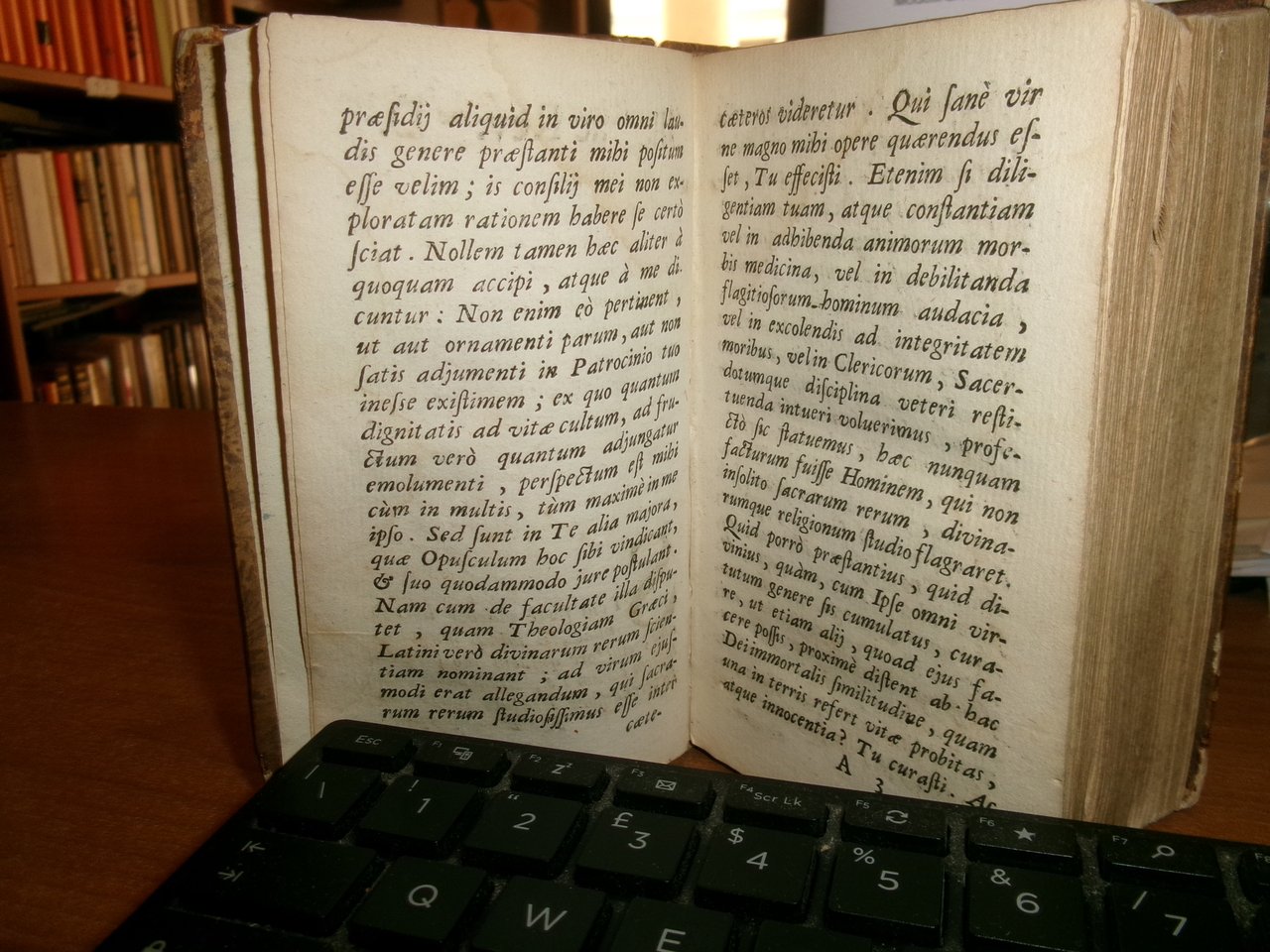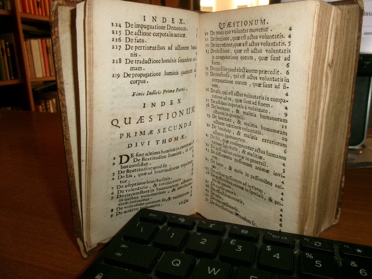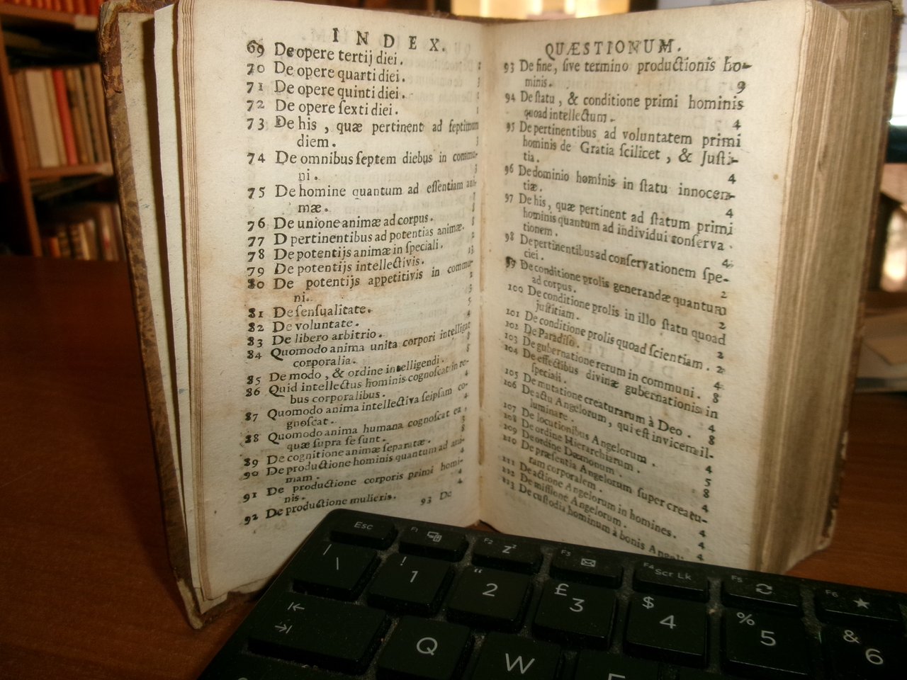 S. THOME AQUINATIS THEOLOGICAE SUMMAE COMPENDIUM. P. PETRO ALAGONA Theologo Societatis DICATUM... D. PETRO BARBADICO Patriarchae Venetiarum DalmatiAeque Primati... Venetiis Apud Franciscum Hertzhauser, MDCCXXIII. In-16°, m-pelle coeva con fregi e titolo in oro al dorso. 1 f. bianco, (34), 780 pp. Piccolo strappo angolare alla base della legatura ma in buono stato di conservazione con testo in latino. Neg. mens. bianca mob. nero entro busta trasp.