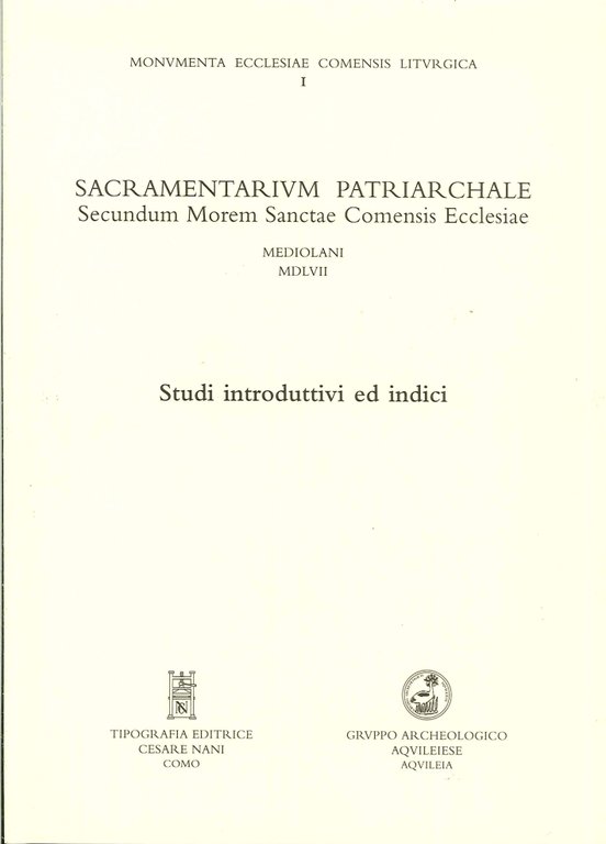 Sacramentarium Patriarchale secundum Morem Sanctae Comensis Ecclesiae. Mediolani MDLVII. Studi introduttivi ed indici