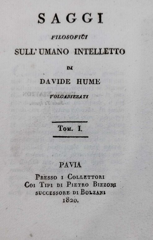 SAGGI FILOSOFICI SULL'UMANO INTELLETTO DI DAVIDE HUME VOLGARIZZATI