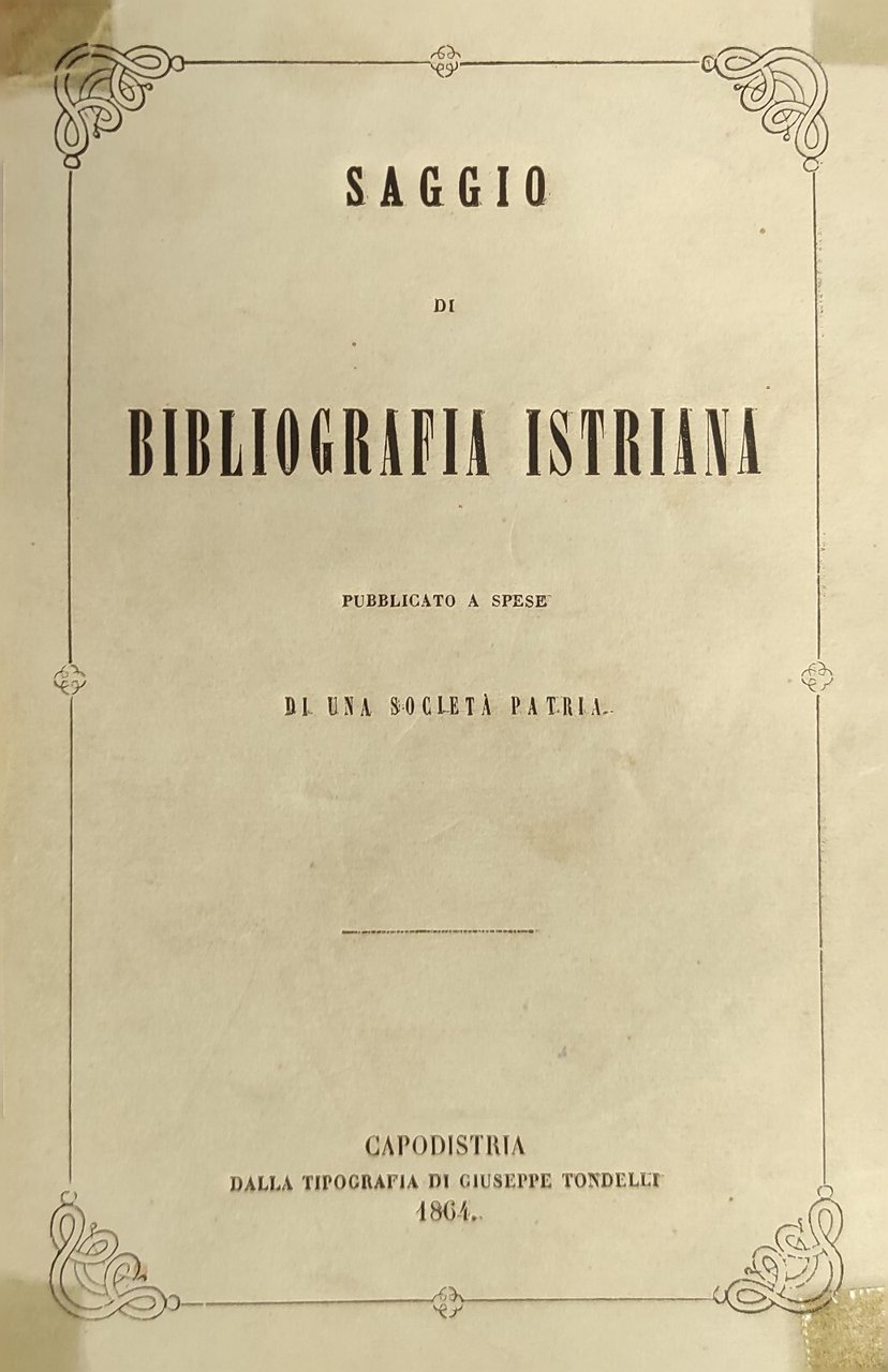 SAGGIO DI BIBLIOGRAFIA ISTRIANA PUBBLICATO A SPESE DI UNA SOCIETA' PATRIA