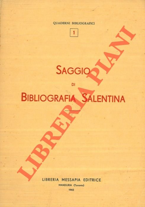 Manduria, Libreria Messapia, 1962, 8vo (cm. 17 x 24) brossura editoriale, pp. 68. Oltre 500 opere catalogate.