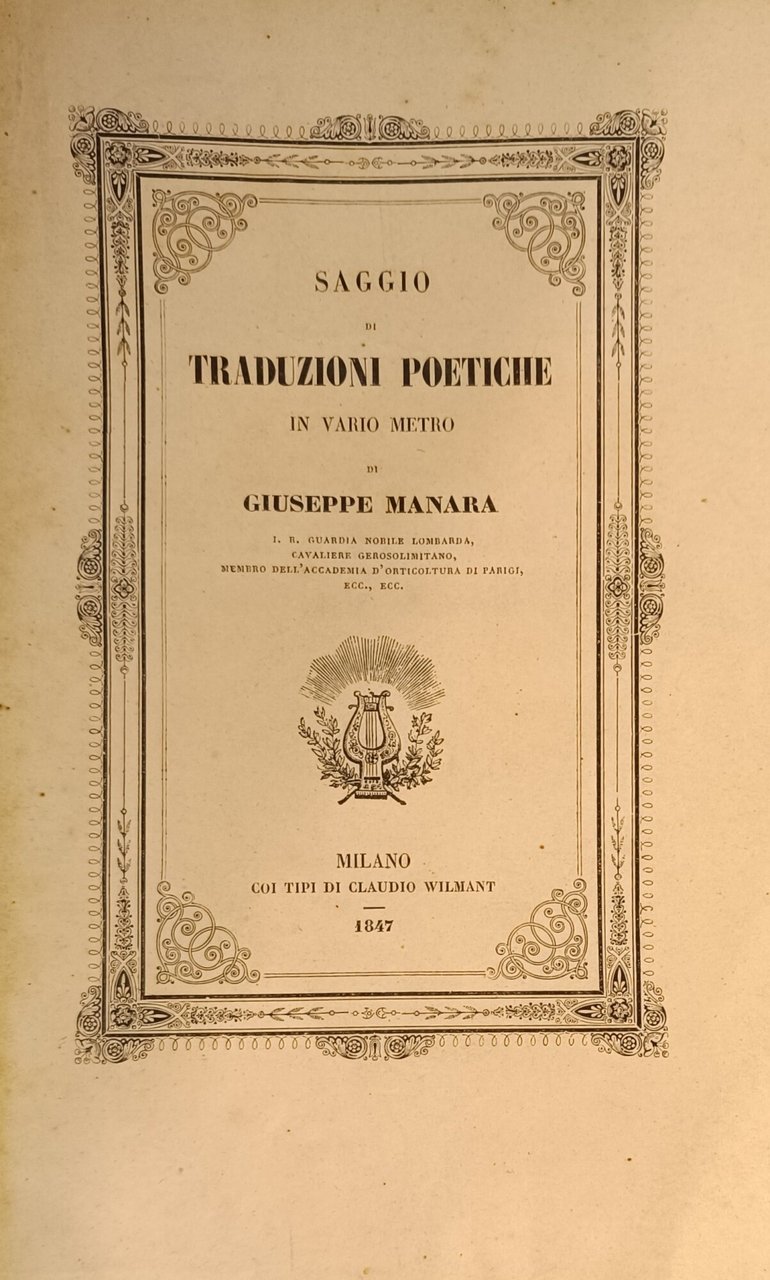 SAGGIO DI TRADUZIONI POETICHE IN VARIO METRO