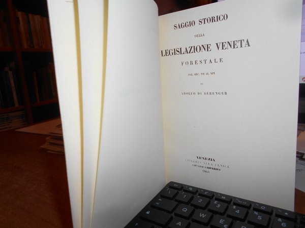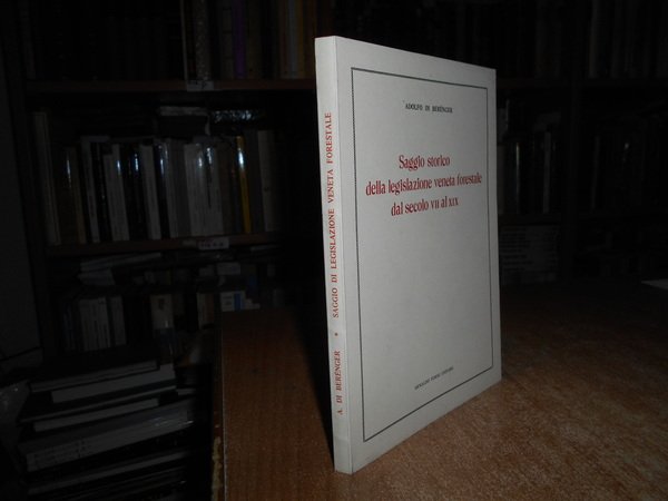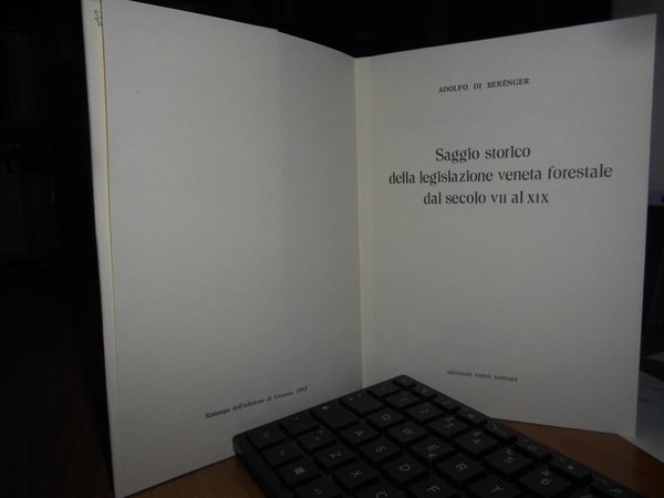 Adolfo Berénger. Bologna, Sala Bolognese, Arnaldo Forni, 1977. SAGGIO STORICO DELLA LEGISLAZIONE FORESTALE DAL SEC. VII AL XIX . In-8°, cart. edit. con risvolti. 157 pp. Ristampa dell' edizione di Venezia, 1863. Come nuovo. Neg. lett. mod. mob. E