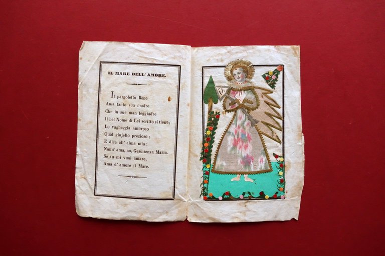 Santino Sonetto il Mare dell'Amore Collage Realizzato a Mano Primo '800 Unico